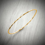 This slimline, oval, twisted, 9ct gold bangle with a textured, high-shine is a timeless classic. It is perfect for everyday wear or to add a sleek and simple shimmer to that outfit of the day. Whether worn alone or as a stack, this is soon to become a wardrobe essential for years to come.