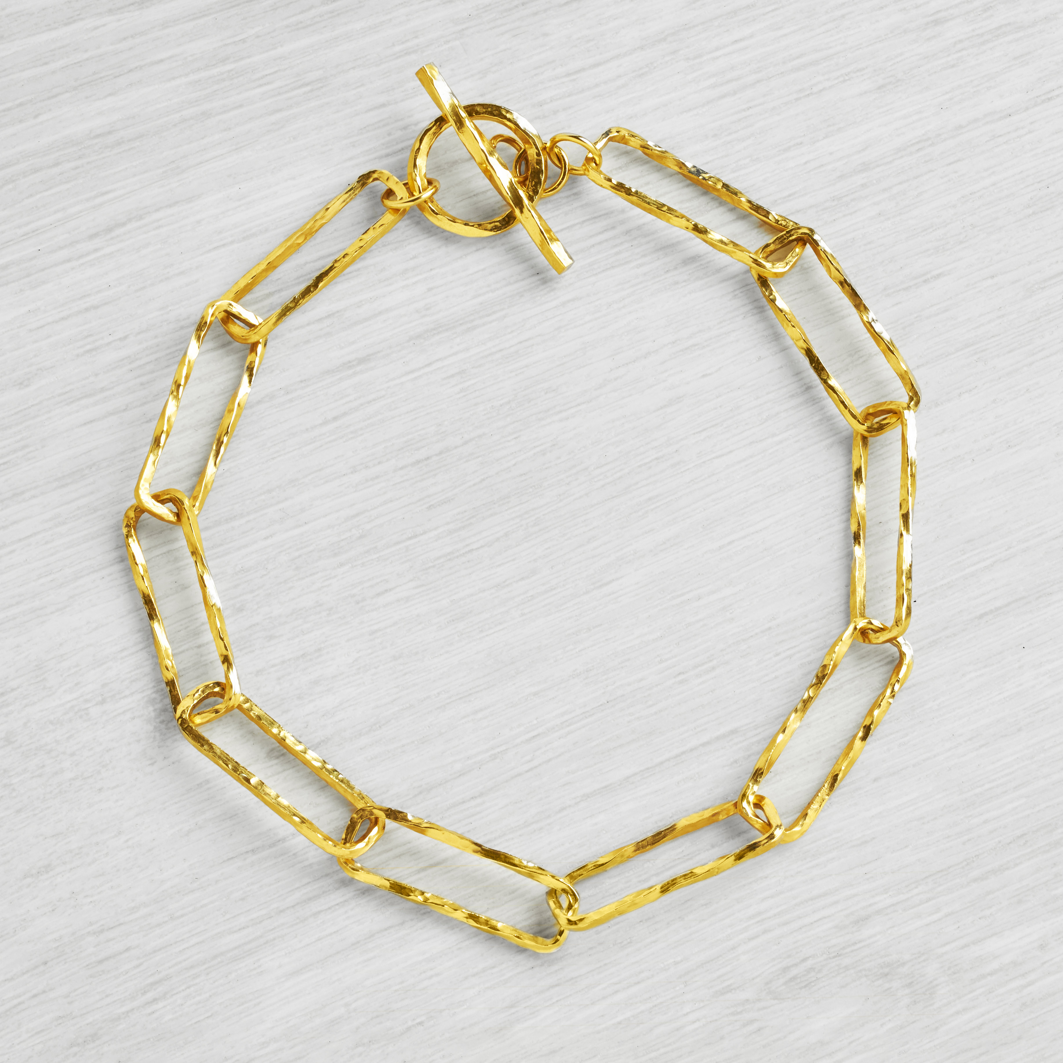 A contemporary take on the classic symbol of solidarity and unity - our paperclip chain is stunningly simple and goes with any outfit. The chain is textured and finished to a high shine exuding elegance and style. Why not pair them with our stunning chain earrings to complete the look?