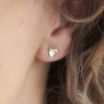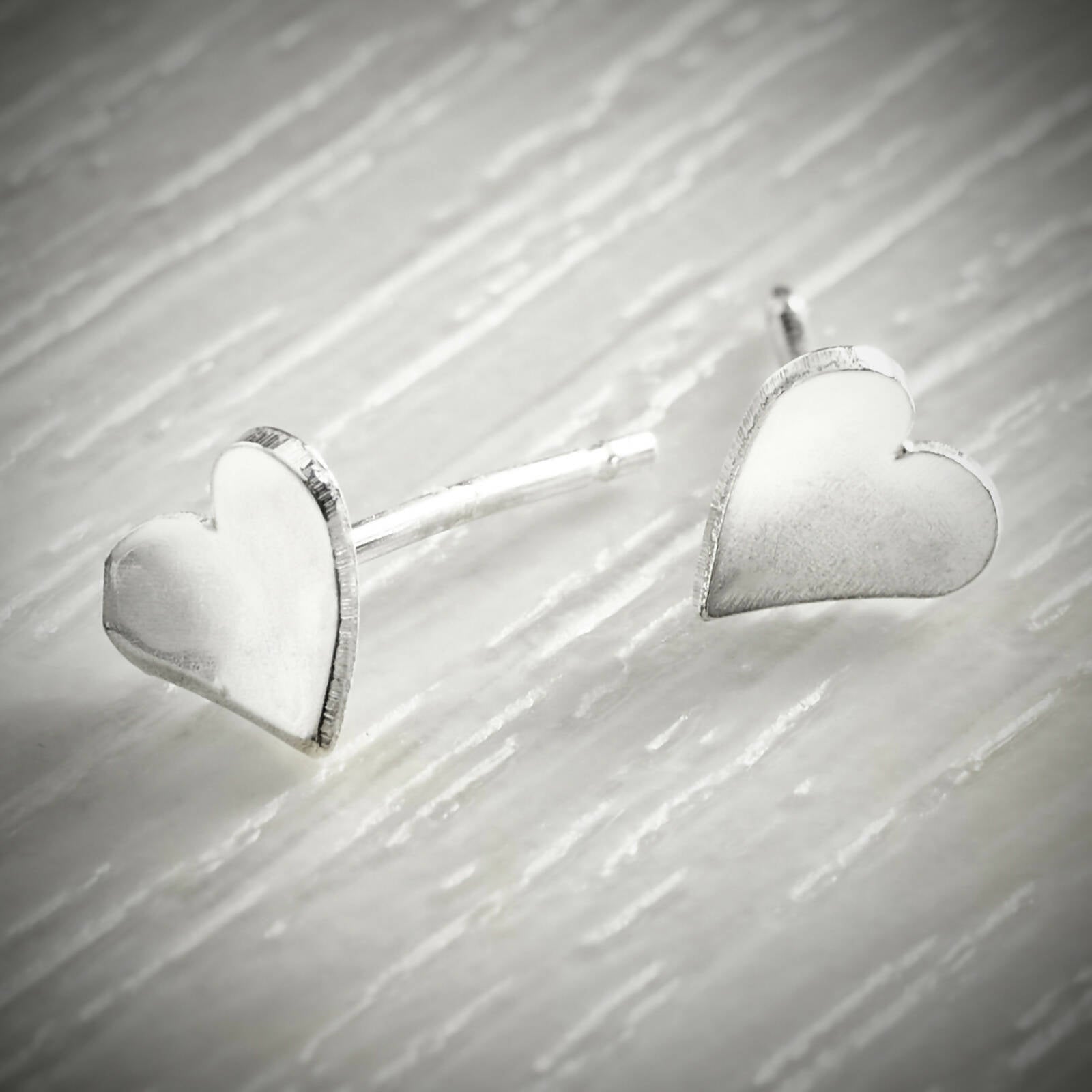 These dainty little silver studs are a delightful token of love. The heart is convex with a polished finish. These would work well as an asymmetrical pair, on their own as a cute, simple, everyday stud or in a secondary piercing with some drop earrings at their side.