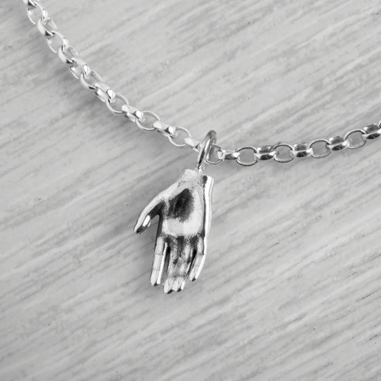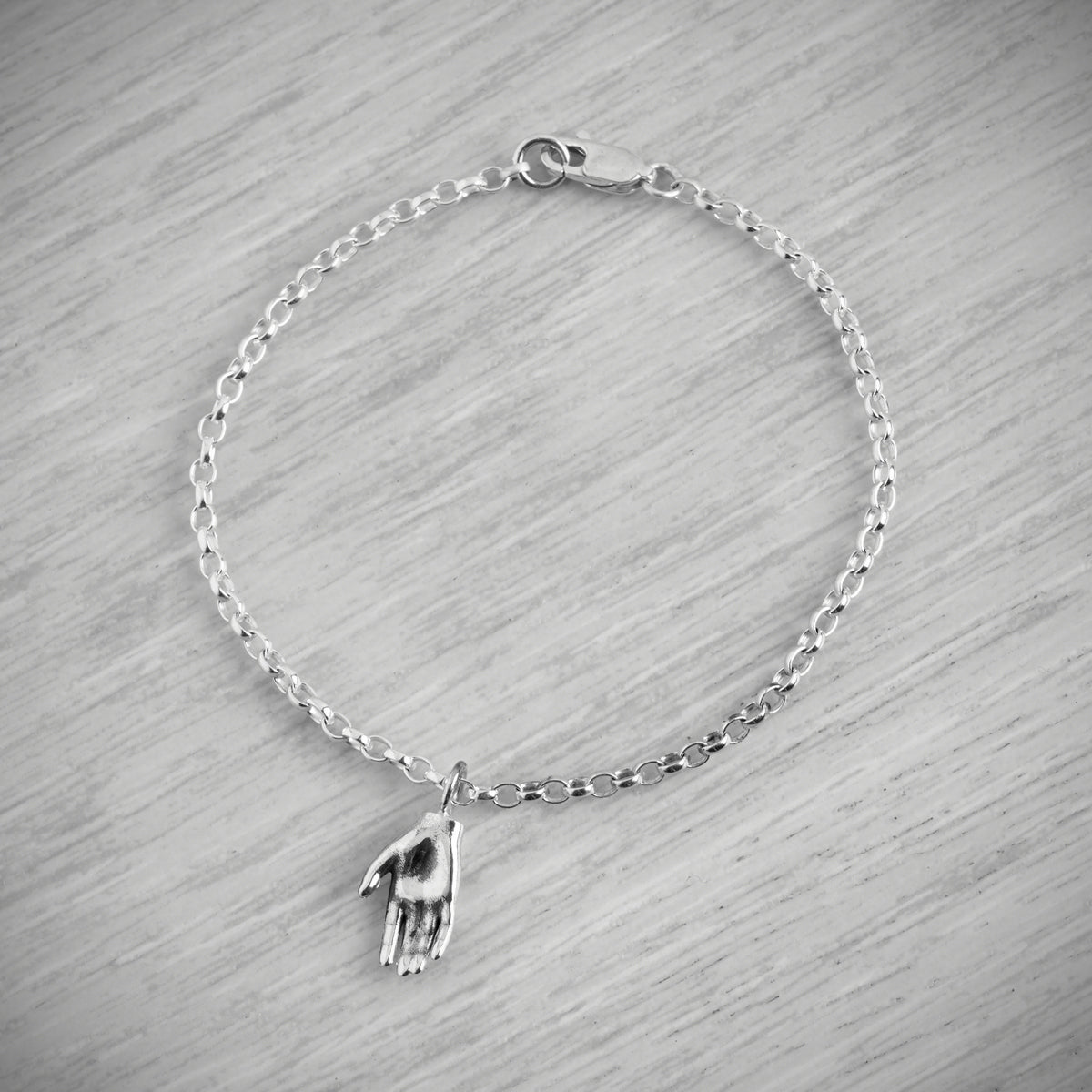 The tiny silver hand bracelet is a delicate piece of jewellery, crafted with intricate detail and precision. Small in size but big in significance.